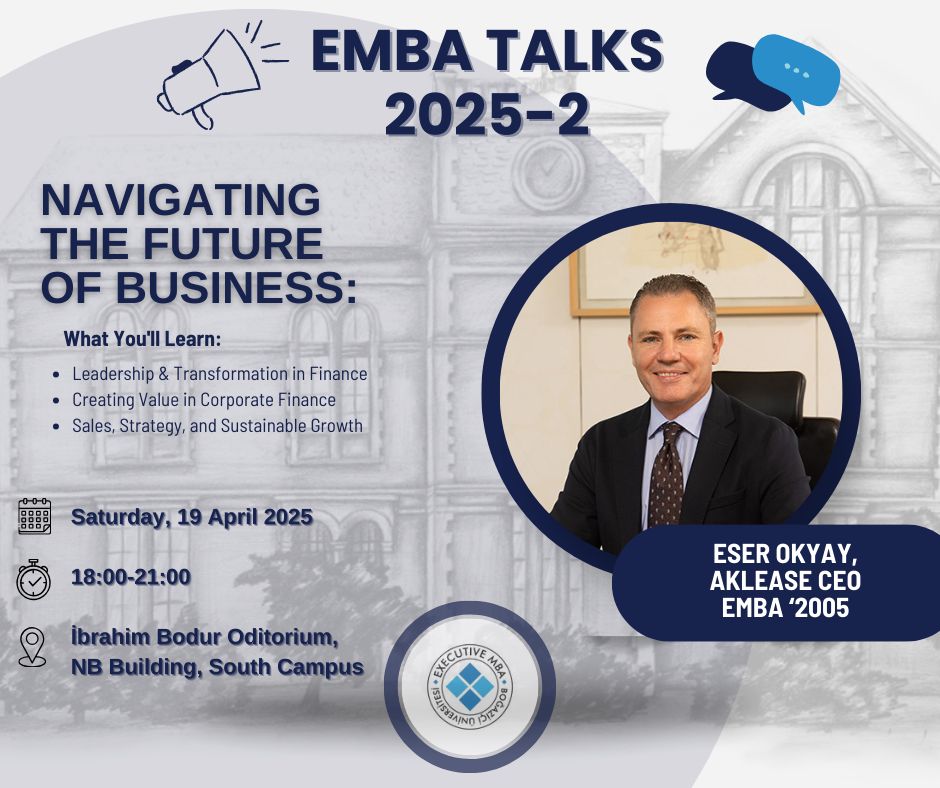 Join us for the second session of the EMBA Talks 2025 series with Eser Okyay, CEO of AKLease and proud EMBA 2005 graduate!